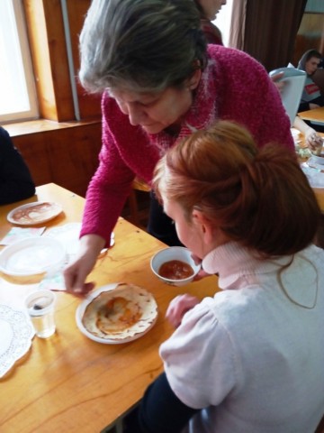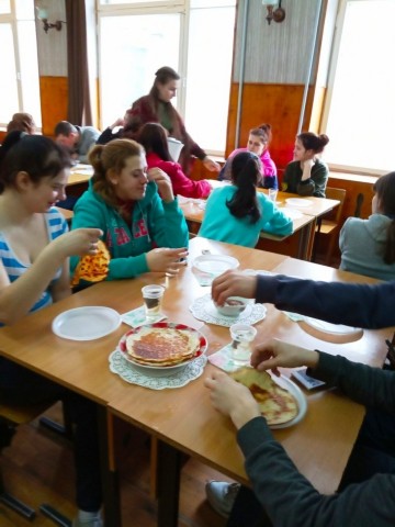 Обучающиеся с интересом слушали рассказ ведущих, с удовольствием отгадывали загадки, шутили, принимали участие в конкурсах. Традиционное кушанье масленицы – блины.