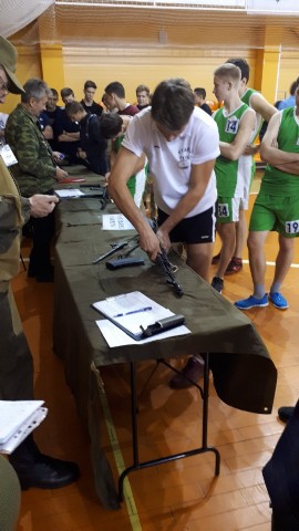 Участники соревновались в сборке-разборке автомата, снаряжении магазина АК-74 патронами, стрельбе из электронного оружия с открытым прицелом (винтовка МР-512С, модель «Рубин» ЛТ-512С), подтягивании на высокой перекладине, отжимании, прыжках в длину и других.